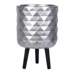 DMND-RND-30-SLV Кашпо Даймонд с подставкой, файберстоун, серебристое,D30,5H46 cm