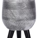 WSTRIPR-20-SLV Кашпо Страйп с подставкой, файберстоун, серебристое,D20.5H32 cm