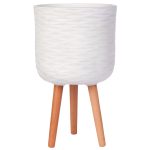 WWAVE25-AW Кашпо Патерн с Подставкой, файберстоун, слоновая кость,D25H31 cm
